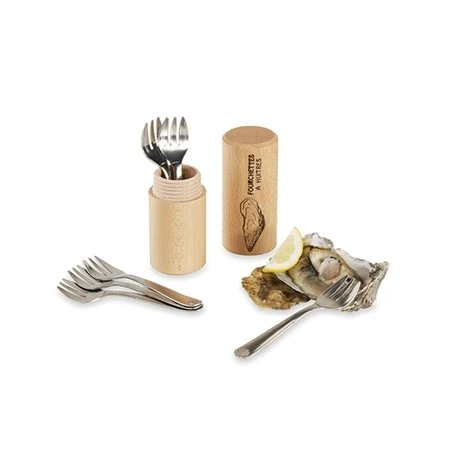 Les 6 fourchettes à huîtres en acier inoxydable sont fournies avec leur fourreau en bois. Idéales pour vous permettre de déguster vos huîtres avec des fourchettes adaptées. Caractérisées par leurs trois dents, ce sont des ustensiles de cuisine pour fruits de mer indispensables pour la dégustation de vos huîtres.