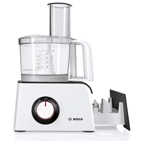 Le robot multifonctions Styline BOSCH blanc et anthracite, d’une puissance de 800 W est parfait pour réaliser de nombreuses préparations sans efforts. Il mélange, pétrit, râpe, hache, émince et bien plus encore facilement grâce à ses nombreux accessoires lavables au lave-vaisselle.