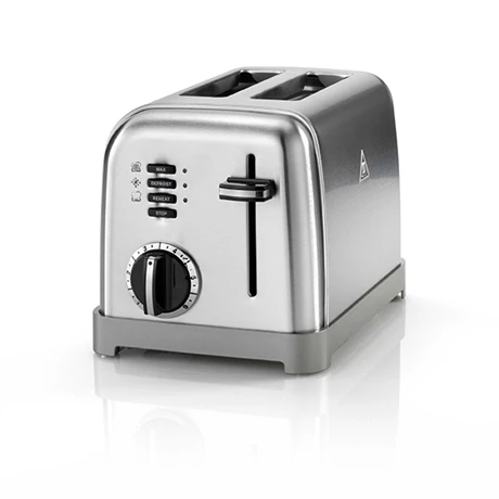 Le toaster 2 tranches Cuisinart propose 3 fonctions combinables : griller, décongeler et réchauffer. Doté de fentes extra-larges, il accueille les tranches fines ou épaisses, quel que soit le type de pain. Le dispositif de centrage de la tranche de pain assure une cuisson uniforme. Pratique, la fonction Bagel allonge le temps de cuisson pour cuire à la perfection vos pains épais et bagels. Son thermostat 6 positions permet de choisir précisément le niveau de brunissage du pain. L’arrêt et l’éjection sont automatiques. La touche Stop permet de commander l’éjection du pain avant la fin du cycle pour interrompre la cuisson. Le tiroir ramasse-miettes est amovible. En inox brossé, ce toaster design, robuste et compact trouve facilement sa place sur le plan de travail.