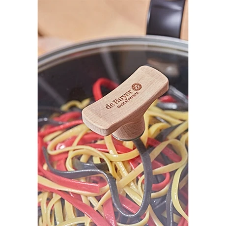Muni d’une poignée ergonomique en bois de hêtre véritable, issu des forêts vosgiennes gérées durablement, il possède également un trou vapeur en inox qui laisse passer la vapeur de cuisson et permet l’étanchéité du couvercle.