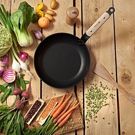 Ustensile idéal pour cuisiner facilement, la poêle 20 cm choc B Bois est une poêle ronde, conçue en aluminium forgé 4 mm, revêtu d’antiadhérent pour cuire sans ajout de matière grasse. Son revêtement intérieur et extérieur noir structuré ultra résistant et renforcé est de toute dernière génération : il est garanti sans PFOA et sans particules, avec une épaisseur de 60 microns.