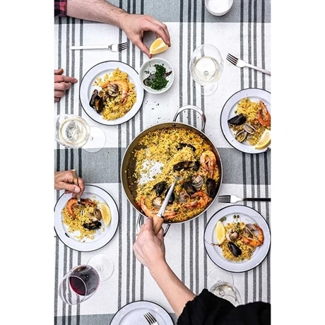Conçue pour réaliser de délicieuses paëllas pour 4 personnes, la Poêle à Paëlla 32 cm est issue de cette gamme, et est dotée de 2 anses en inox.