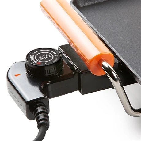 Pour une cuisson sans matières grasses la plaque de cuisson possède un revêtement antiadhésif ainsi qu’un thermostat réglable amovible pour des cuissons précises. La plancha dispose d’un témoin lumineux indiquant la marche de l’appareil.