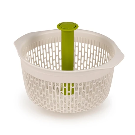 Cet ustensile au design astucieux peut en effet, accueillir un axe central et une ventouse amovibles afin de devenir une essoreuse à salade. Pour cela, il vous suffit de placer votre salade ou vos légumes dans la cuve et de les rincer à l’eau puis de ventouser l’essoreuse au fond de votre évier. En pompant l’axe de haut en bas, vous faites tourner le panier ce qui essore vos aliments.