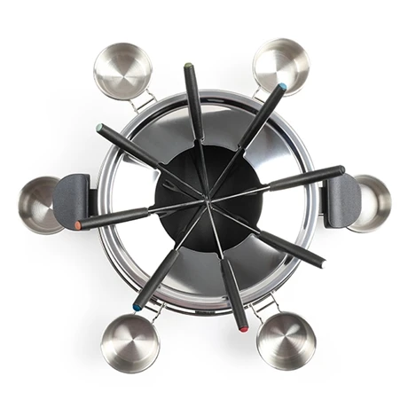 Cet appareil à fondue 1,8 L 8 personnes 1000 W DOC264 Livoo accueillera vos fondues bourguignonnes, recette à base de morceaux de viande plongés dans un bain de friture. Le caquelon dispose d’un revêtement anti-adhésif adapté à cette recette. Les 8 fourchettes ont une extrémité de couleur pour que chaque convive puisse identifier la sienne. Astucieux, le plateau tournant avec coupelles à sauces en acier inoxydable permet de se servir aisément. Pratique, le range-câble intégré facilite le stockage de l’appareil. La collerette anti-éclaboussure, quant à elle, protège de tout risque de brûlure.