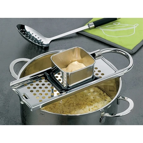 La mandoline à spaetzle court Kela est un ustensile de cuisine pratique pour les amateurs de fait-maison qui veulent varier et changer des pâtes fraiches en découvrant ces petites pâtes alsaciennes.
