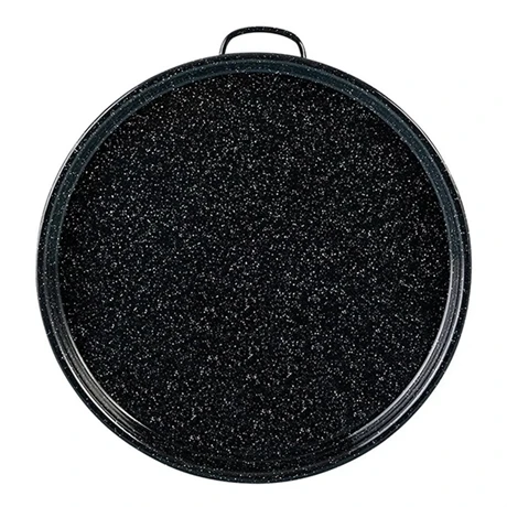 Le plateau à pizza de 34 cm en acier Graniteware est fabriqué au Mexique.