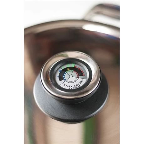 Pour vous guider dans vos recettes, un livre de 22 recettes écrit par l’autrice Marie Chioca, tenancière du blog Saines gourmandises, est offert avec cette sauteuse 24 cm Ecovitam. Rôtis, légumes à l’étouffée, fruits de mer ou blanquettes, choisissez un plat parmi la vaste étendue de préparations réalisables avec la sauteuse et lancez-vous sur n’importe quel feu, dont induction. Il ne vous restera plus qu’à surveiller la cuisson grâce au thermomètre incrusté dans la poignée du couvercle en inox : suivez les indicateurs, restez dans la zone verte et réussissez vos plats à coup sûr grâce à la sauteuse Ecovitam.