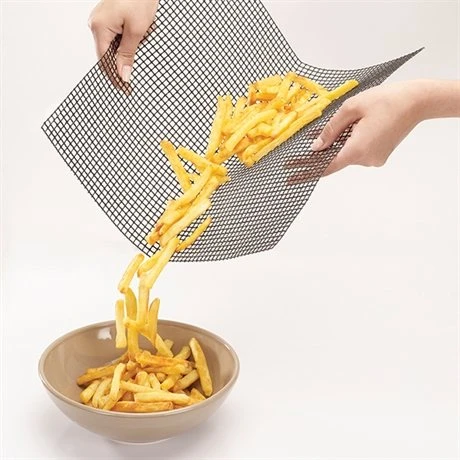 Compatible avec les fours traditionnels et micro-ondes, les deux grilles de cuisson en fibre de verre avec un revêtement anti-adhérent permettent de cuire vos préparations sans ajouter de matières grasses. Simple d’utilisation, elles se posent directement sur votre grille de four ou sur vos plats de cuisson, permettant la libre circulation de l’air pour des préparations toujours plus croustillantes : frites, feuilletés, mises en bouches …
