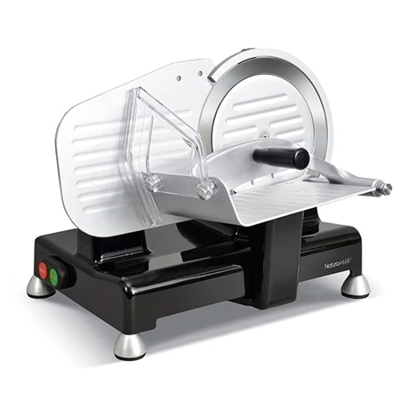 Dégustez du jambon sec ou du saucisson quand bon vous semble ! Quoi de plus facile avec la trancheuse électrique noir lame 19,5 cm 110 W que de couper fraîchement votre charcuterie, votre viande, votre pain, vos légumes en fines tranches régulières. Découpez et tranchez comme un vrai professionnel. Dotée d’une lame en acier inoxydable trempé de haute qualité, vous tranchez parfaitement tous vos aliments grâce à son diamètre de 19,5 cm. Avec son bouton gradué, vous pouvez choisir précisément l’épaisseur de vos tranches jusqu’à 15 mm selon vos besoins : pour un carpaccio de bœuf, une chiffonnade de jambon, des tranches de pain ou de fromage ou à l’inverse pour des tranches de rôtis très épaisses.