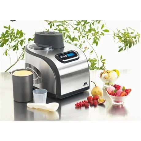 Son groupe froid autonome réalise jusqu’à 1 L de délicieuse crème glacée à partir de 30 minutes seulement. Il est possible de choisir la consistance souhaitée en la programmant jusqu’à 60 minutes. Son écran LCD indique la température atteinte et le décompte du temps restant. Elle dispose d’un bouton marche/arrêt, de l’arrêt automatique avec signal sonore et d’un couvercle transparent. Sa cuve a une capacité d’1,4 L avec revêtement anti-adhérent pour un nettoyage facile. Elle est livrée avec un verre doseur, une spatule et une notice avec recettes.